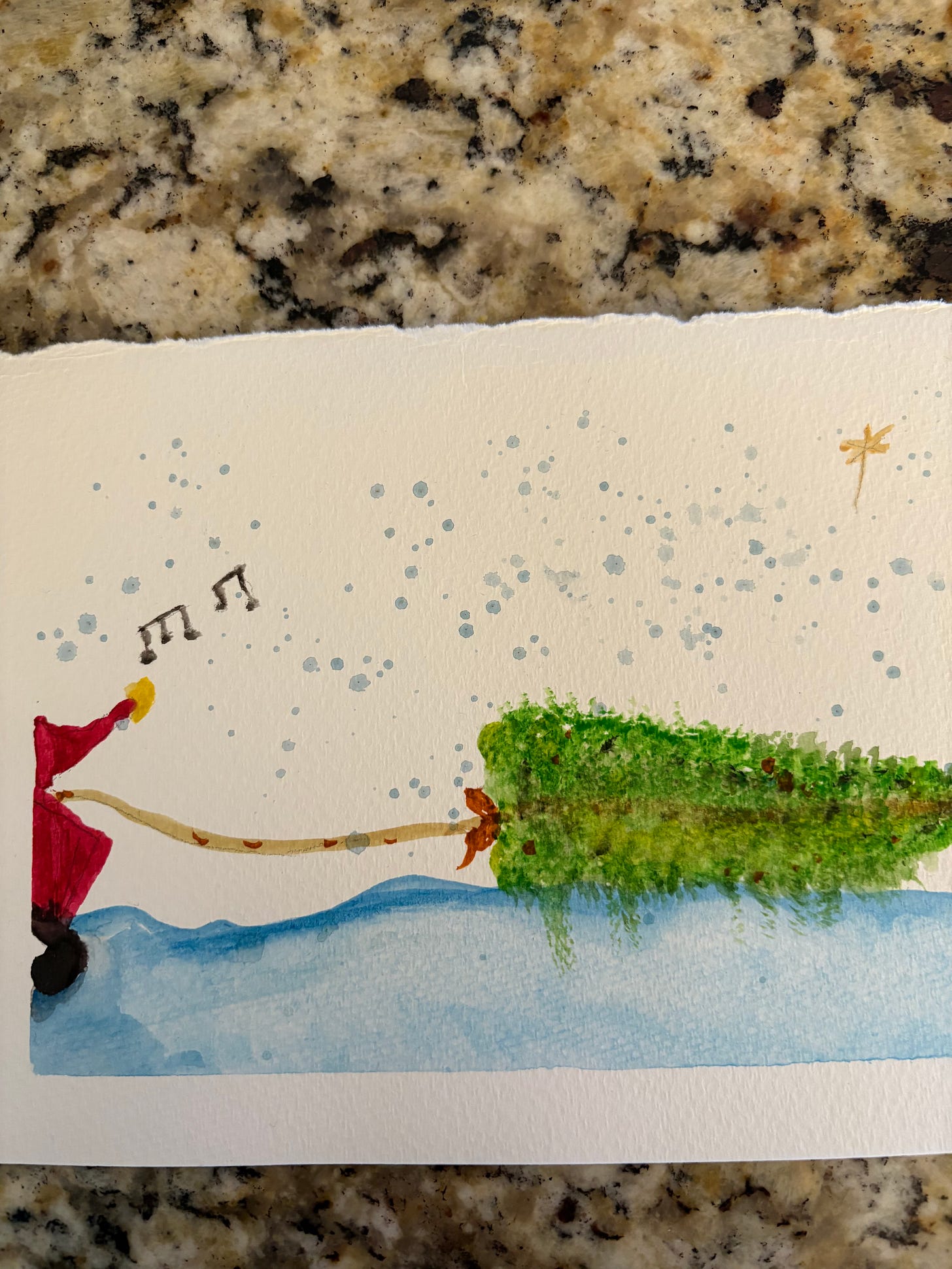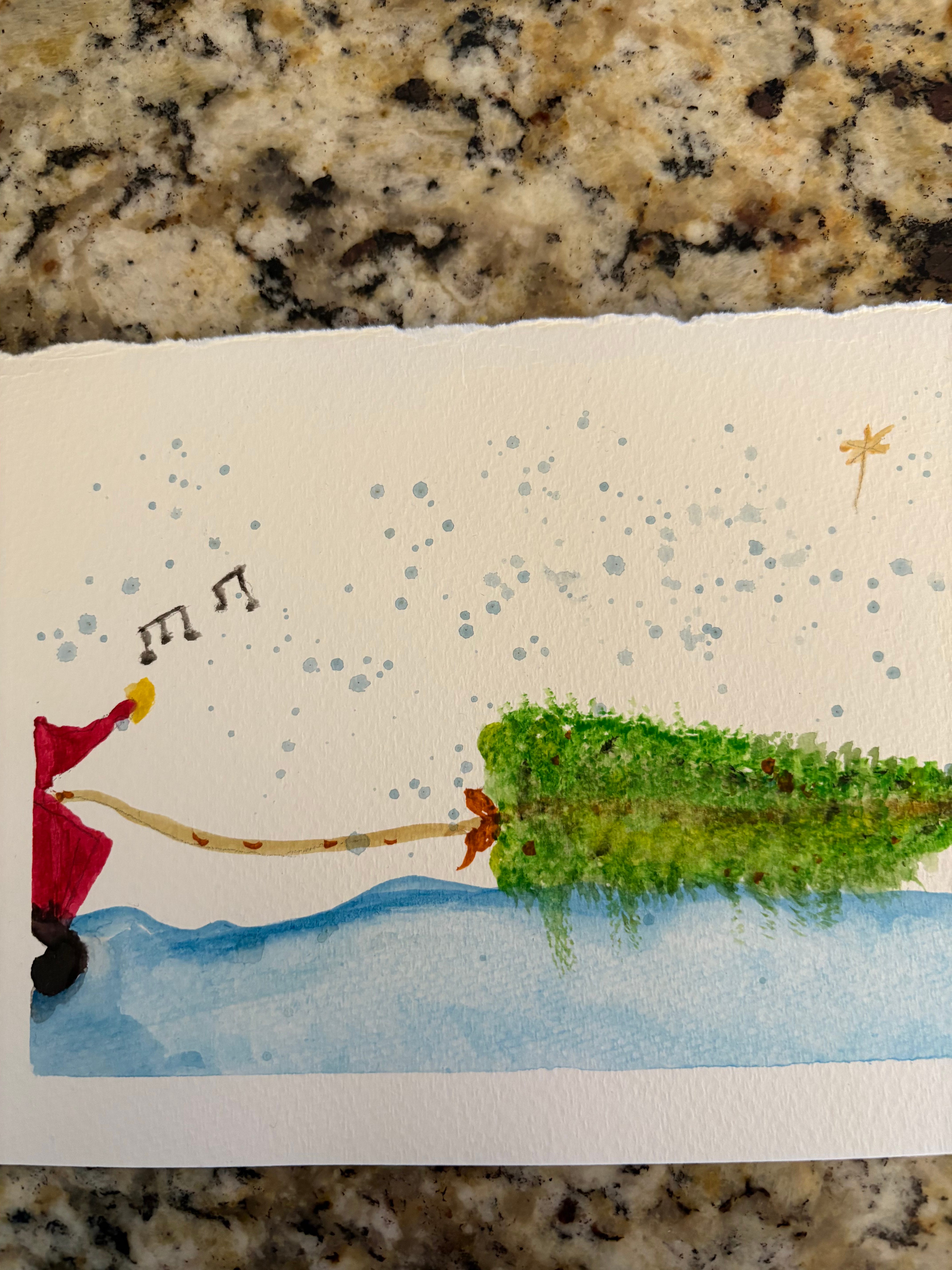 Art Dabble: Back in December, I saw this cute watercolor of a gnome taking home a Christmas tree and wanted to try it, but I didn't have time until last week. It was fun to do. Although my star in the sky looks more like a dragonfly.